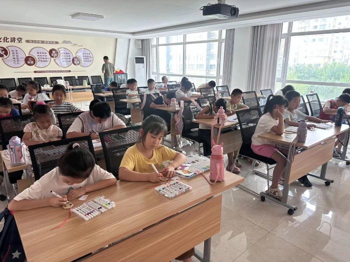 在社區活動中心,實踐隊隊員精心布置了一個充滿古韻的工作室。原木色的長桌上擺放著經過特殊處理的竹片、毛筆和墨水,墻上懸掛著《孫子兵法》的名句書法作品。活動開始時,我們首先用生動形象的語言講述了孫武在齊國著書立說的歷史故事。當孩子們了解到腳下的這片土地可能就是孫武當年思考戰爭藝術的地方時,眼神中頓時閃爍出好奇與自豪的光芒。