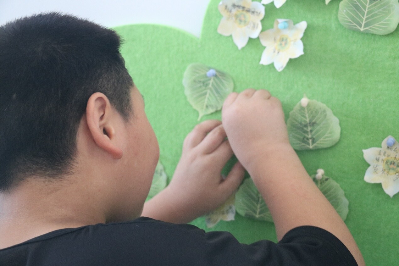 圖為小朋友們正在心愿樹上貼下自己的心愿便利貼 陳立志 農姚 攝