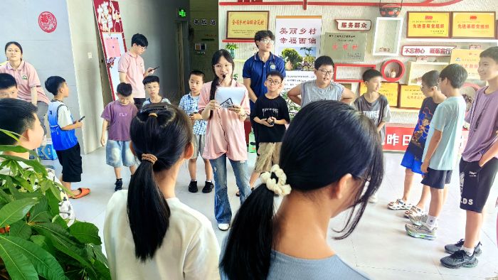 在主題活動方面,實踐隊員們精心制定了防溺水教育、家國印記、海絲文化、陽光體育四大主題。實踐隊員每周都根據不同主題活動設計相關課程游戲,在日常課程中潛移默化讓學生了解主題活動的內涵。例如在防溺水教育時,實踐隊員帶領學生們前往寶蓋山體育館,通過情景模擬和互動游戲讓學生牢記防溺水知識;在家國印記主題中,實踐隊員結合當地紅色歷史故事開展觀影活動;海絲文化主題則是剖析文化脈絡,進行相關知識問答;陽光體育則師生互動和親子活動,增強合作意識。這些生動有趣的形式,讓主題活動內涵在實踐隊員的言傳身教下浸潤了學生的內心世界,真正達到了教育潤物無聲的效果。