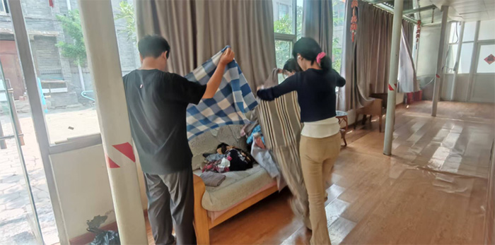 圖為頤心筑夢小隊在為老人疊衣服和床單。楊婷婷 供圖