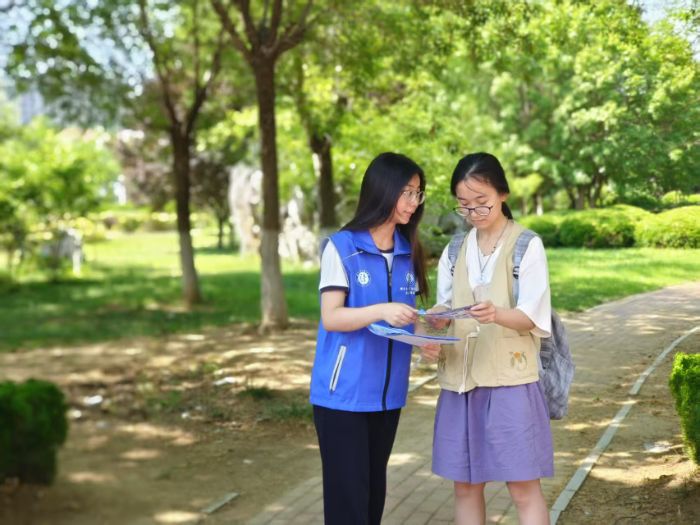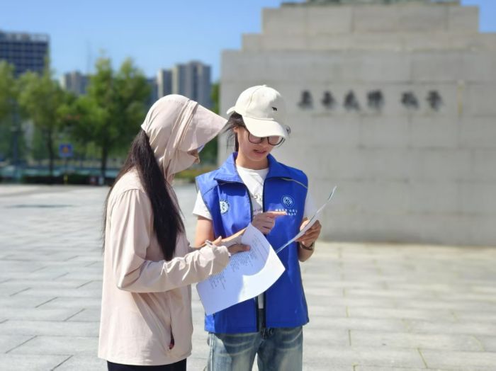 (圖為實踐隊成員向煙臺理工學院同學發放調查問卷 “法盾防詐”實踐隊 李佩軒 供圖)