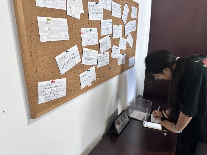 在瞿秋白創作《多余的話》的復原場景前,成員們停下了腳步。這段話是瞿秋白在獄中寫下的,表達了他對自己一生的反思和無奈。成員們圍在場景前,仔細閱讀著《多余的話》的內容,思考著瞿秋白復雜的心境。有人低聲討論,有人陷入沉思,成員們都在努力理解這位革命先輩在特殊歷史時期的心情。