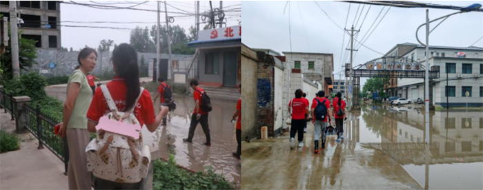 下午14時,實踐團轉赴受災嚴重的鄉村地區之一—碼頭鎮。由于正值雨季,田間內澇嚴重,給當地居民的生產生活帶來了額外的困難。實踐團成員深入田間地頭,實地考察內澇情況,并與當地居民深入交流,了解其實際困難和需求。這些信息對于評估災后恢復的進展和制定未來的防災措施至關重要。