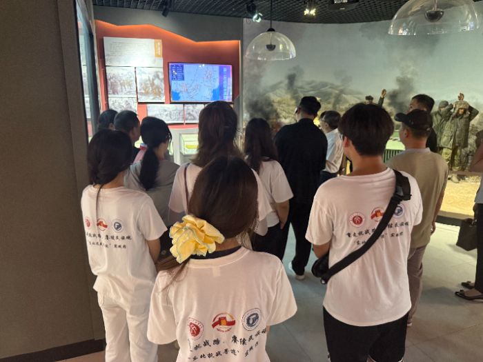 圖為實踐團成員在抗美援朝紀念館聆聽講解員解說 (樊家興 供圖)