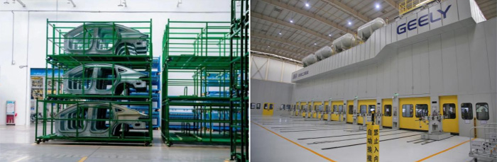 走進吉利汽車,寬敞整潔的廠房,全自動的生產流水線,給同學們強烈的視覺沖擊。在講解人員的帶領下,實踐隊員沿著汽車制造核心工藝順序參觀了沖壓、焊接車間,深入探訪智能化生產線,見證一塊鋼板如何蛻變為智能汽車的完整過程。