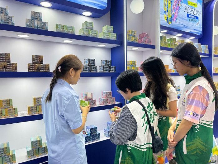 本屆食交會吸引了來自海峽兩岸及全球63個國家和地區的嘉賓和展客商等齊聚一堂,共赴這場以“食”為媒的產業盛會,實踐隊成員在休閑食品成品、新零售、食品加工包裝機械、食品工藝技術、食品原輔材料及添加劑、品牌授權及包裝設計六大領域展區中針對茶味休閑食品進行了行業調研與市場分析,一是通過尋找展會上熱門茶味產品在食品專業教師的指導下分析成分、包裝、賣點,形成調研報告。二是觀察消費者行為,采訪參展采購商對茶味產品的選擇偏好,了解市場需求差異。三是對比同類產品的價格、營銷策略,思考行業競爭格局,做競品分析。