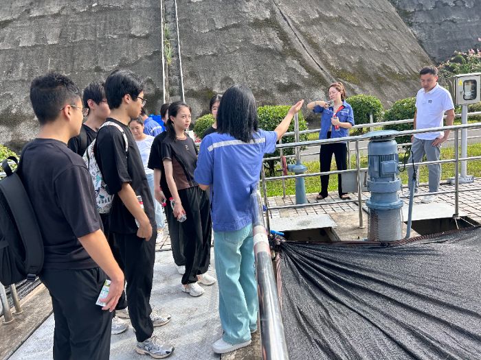 7 月 24 日,團隊深入廣元水務一線。在廣元首創水務有限公司西灣水廠,同學們順著水流方向走過絮凝沉淀池、濾池、加氯間,了解了從江水變為生活用水的全過程。“我們的水質 106 項指標全達標,智慧管控系統能實時調節加藥量。” 水廠負責人指著中控屏上跳動的數據說。