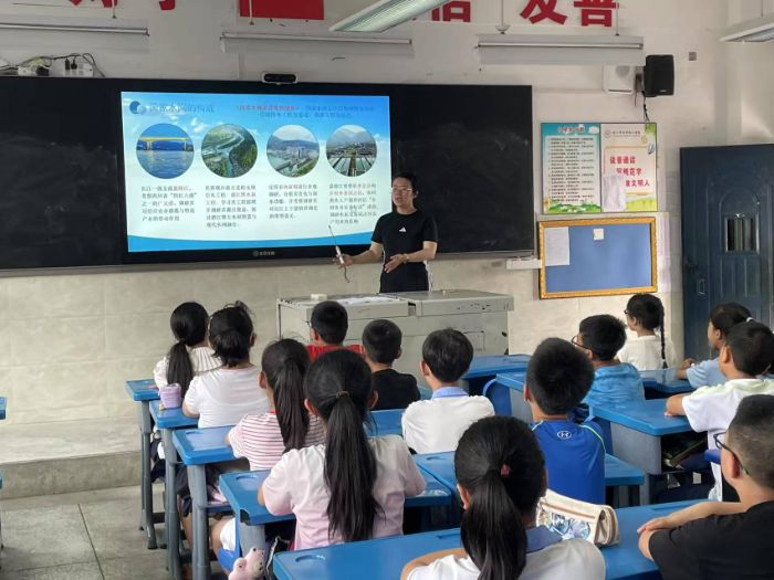 7 月 26 日,實踐隊員前往內江市桐梓壩小學開展宣講活動。實踐團成員向同學們展示調研照片并詳細介紹國家水網建設的內涵與意義。從向家壩的機組轟鳴講到都江堰的江水悠悠,從廣元水廠的凈化流程到燃氣廠的循環管網,將國家水網 “骨干聯網、區域互通” 的藍圖拆解成一個個鮮活案例。這場帶著泥土氣息的分享,讓 “構建國家水網” 從抽象概念變成了可感可知的實踐圖景。