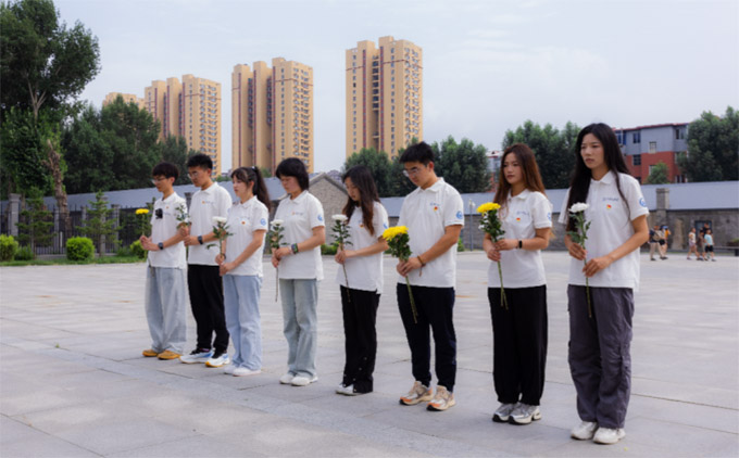 在遺址現(xiàn)場(chǎng),斑駁的磚墻和深嵌的彈孔無(wú)聲訴說(shuō)著1931年的歷史。師生們參觀了復(fù)原展區(qū)和專(zhuān)題展廳,通過(guò)珍貴文物和史料,深入了解當(dāng)年的抗戰(zhàn)歷程。在鐫刻著1085名英烈姓名的紀(jì)念墻前,師生們肅立默哀、敬獻(xiàn)鮮花,表達(dá)對(duì)革命先烈的深切緬懷。