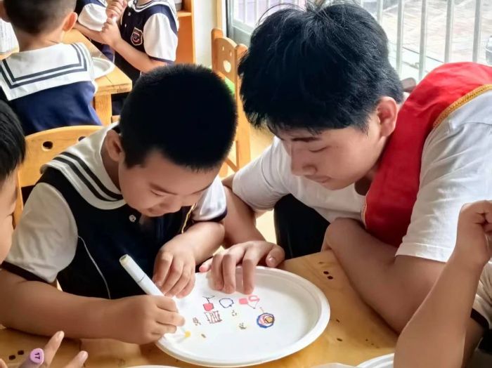 (圖為我隊志愿者指導小朋友進行創作,楊福森攝)