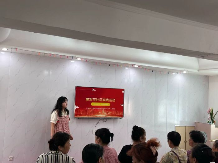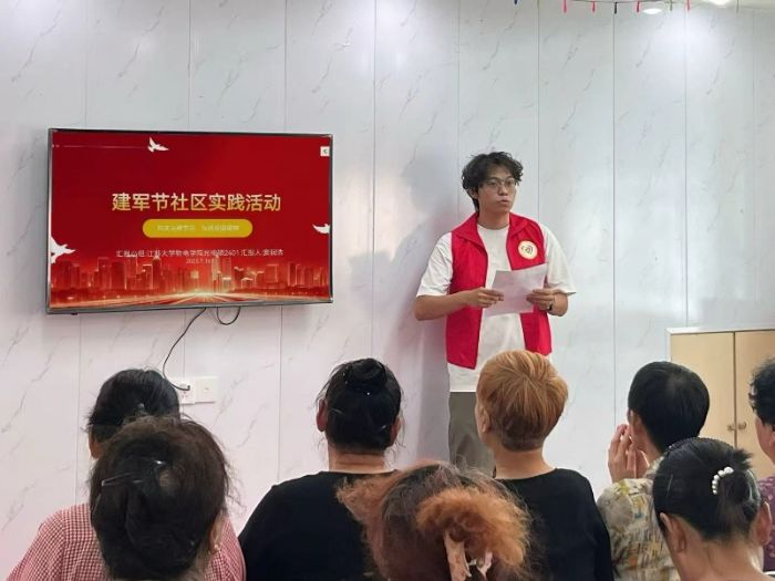 2025年7月16日上午,來自江蘇大學物理與電子工程學院的“強軍有我,青春為我”研究生實踐隊在竇潤浩隊長的帶領下,走進花山灣新村社區活動中心,成功舉辦了主題為“傳承紅色基因,禮敬鋼鐵長城”的科普宣講活動。竇潤浩、陳揚五名物電學院研究生精心籌備,為社區三十余位老年居民呈現了一場融合歷史厚重感、科技前沿性與人文關懷的建軍節主題盛宴。活動聚焦歷史回溯、科技強軍解讀與代際情感交流,在青春學子與銀發長者之間架起了一座特殊的紅色精神傳承橋梁。