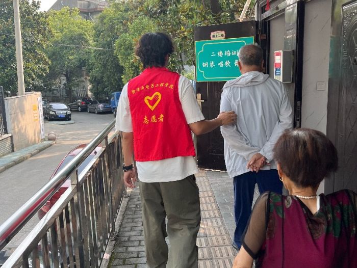上午八時三十分,實踐隊員們已提前抵達位于社區二樓的綜合活動中心進行場地布置。考慮到參與活動的老人普遍年事較高,行動多有不便,隊員們特別關注上下樓安全問題。八十三歲的趙奶奶在樓梯口望著臺階面露難色,隊員陳宇濤立即上前,穩穩托住老人的手臂,調整自身步伐節奏配合老人緩慢上行。隊員陳揚緊隨其后在下方臺階進行防護,并不時輕聲提醒臺階高度。“奶奶您放心扶著我,咱們慢慢來。”陳揚的話語溫和而堅定。從一樓到二樓的二十級臺階,隊員們全程護送三位腿腳不便的老人安全抵達活動室。這一看似平常的幫扶舉動,在活動伊始便傳遞出青年一代對長者的深切尊重,無聲詮釋著尊老敬老的中華傳統美德,為整場活動奠定了溫馨和諧的基調。