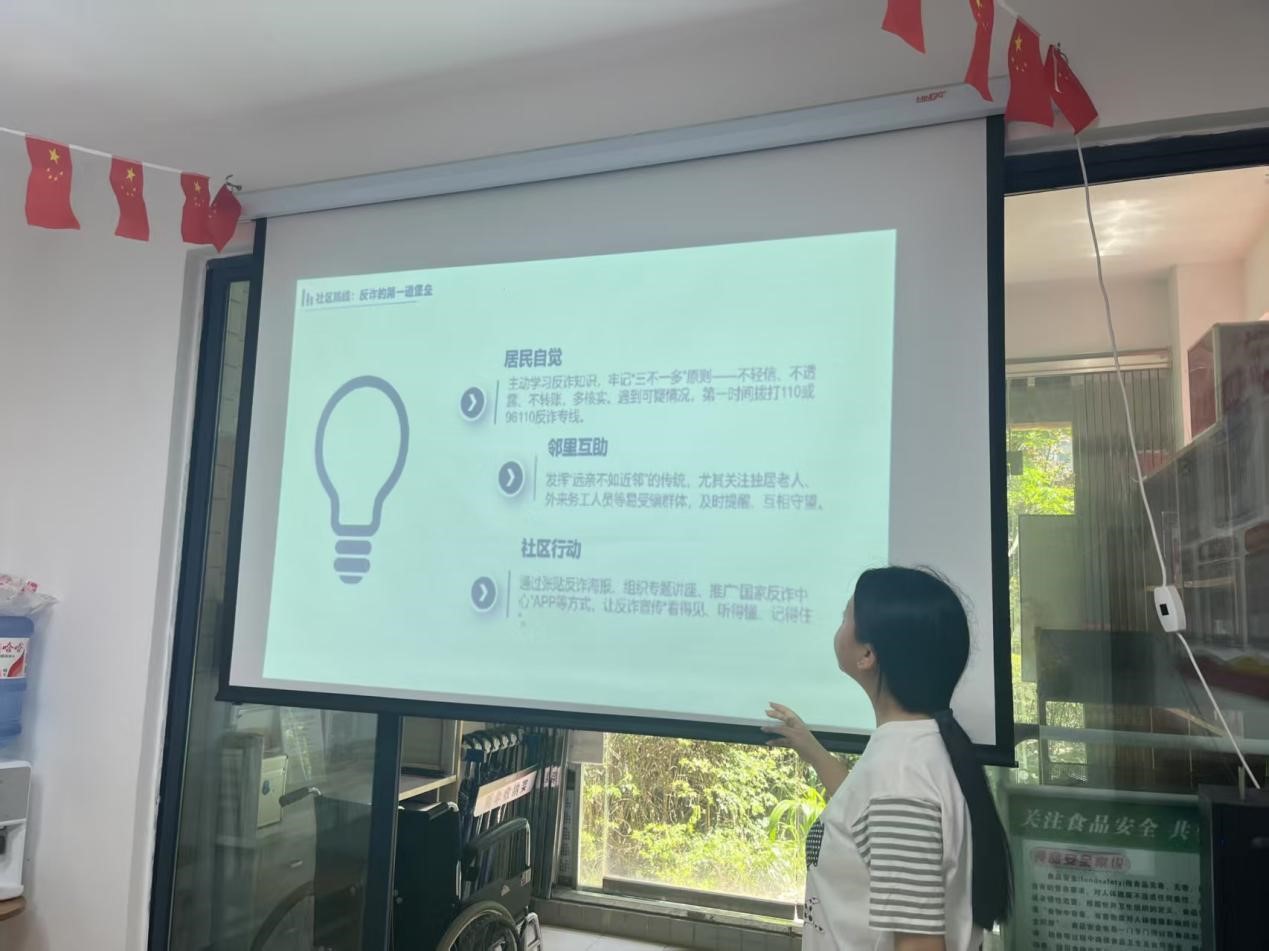 分眾觸達,直擊詐騙痛點小分隊創新采用“分眾化精準宣教”模式:在老年群體專場:成員黃芊雪化身宣講員,用真實案例與圖文并茂的PPT,深入剖析“刷單返利”“冒充客服”“AI換臉”等高頻騙局。一句句接地氣的順口溜——“索要密碼是陷阱,立馬掛斷110”、“轉賬匯款要謹慎,兒女確認再答應”——配合生動的手勢操,讓反詐知識入腦入心。