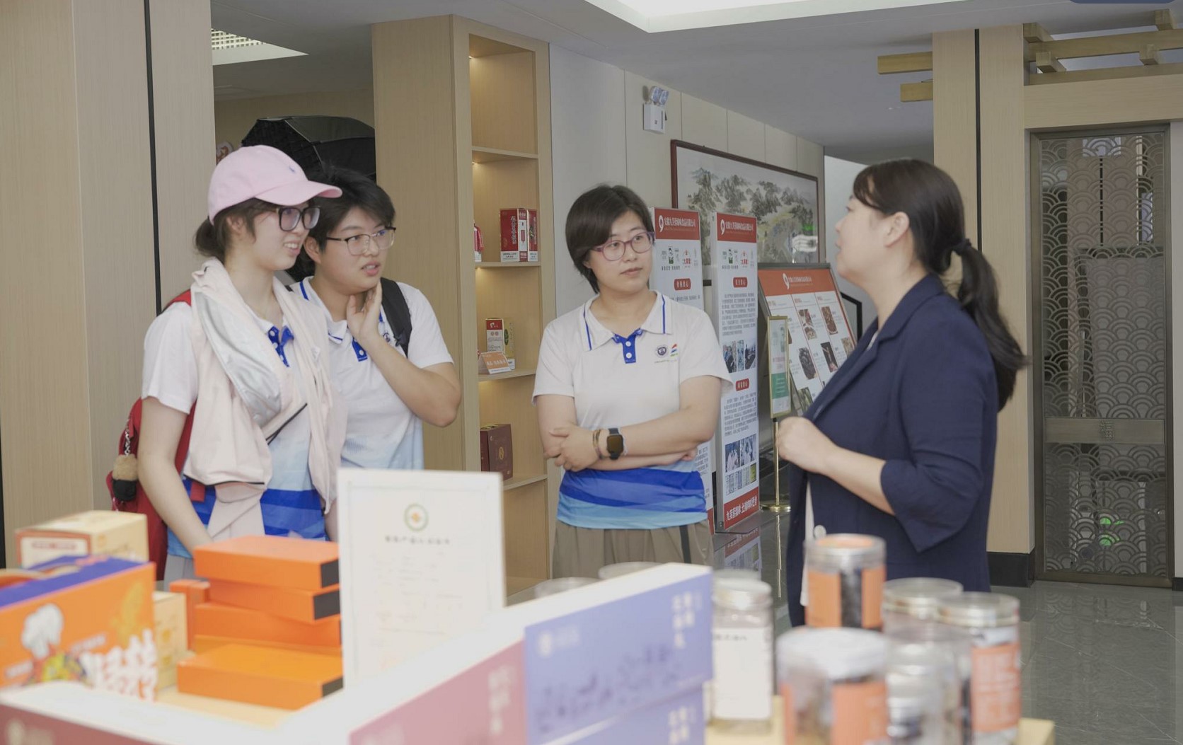 圖為實踐團(tuán)成員們了解九芙蓉臻味食品有限公司的黃精茶、黃精芝麻丸等黃精食品 張振宇供圖