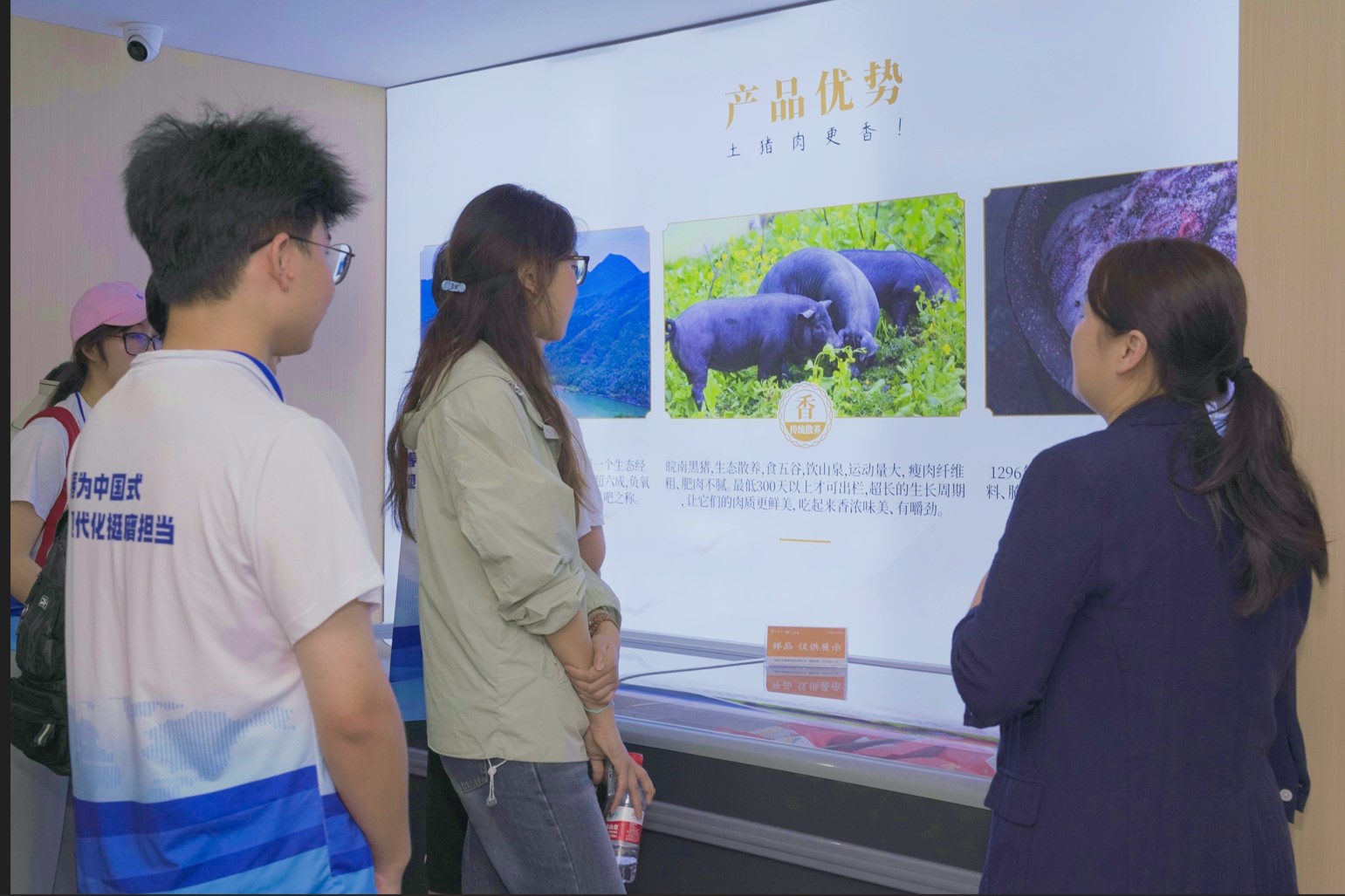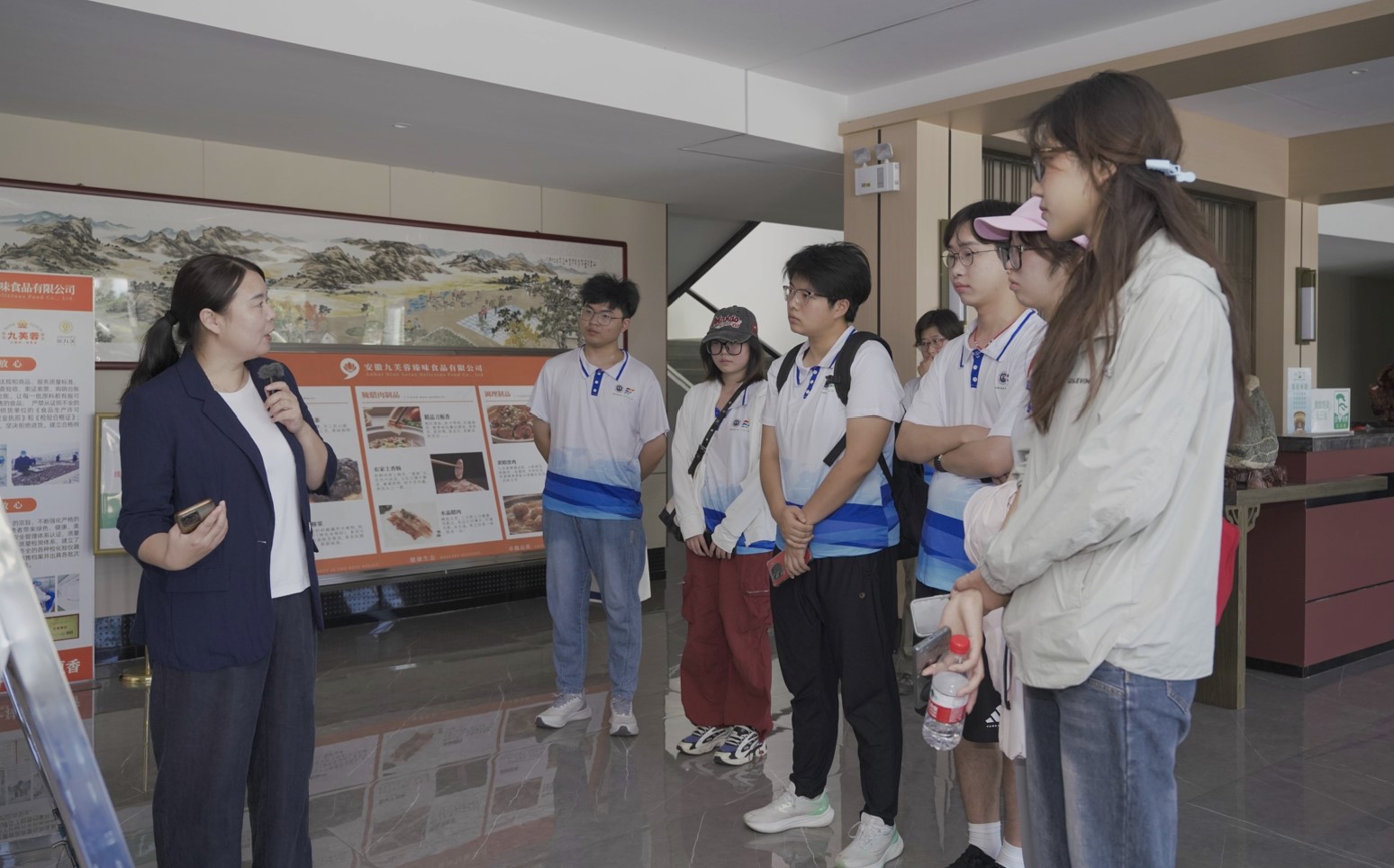 圖為實踐團(tuán)成員了解九芙蓉臻味食品有限公司的發(fā)展歷程 張振宇供圖