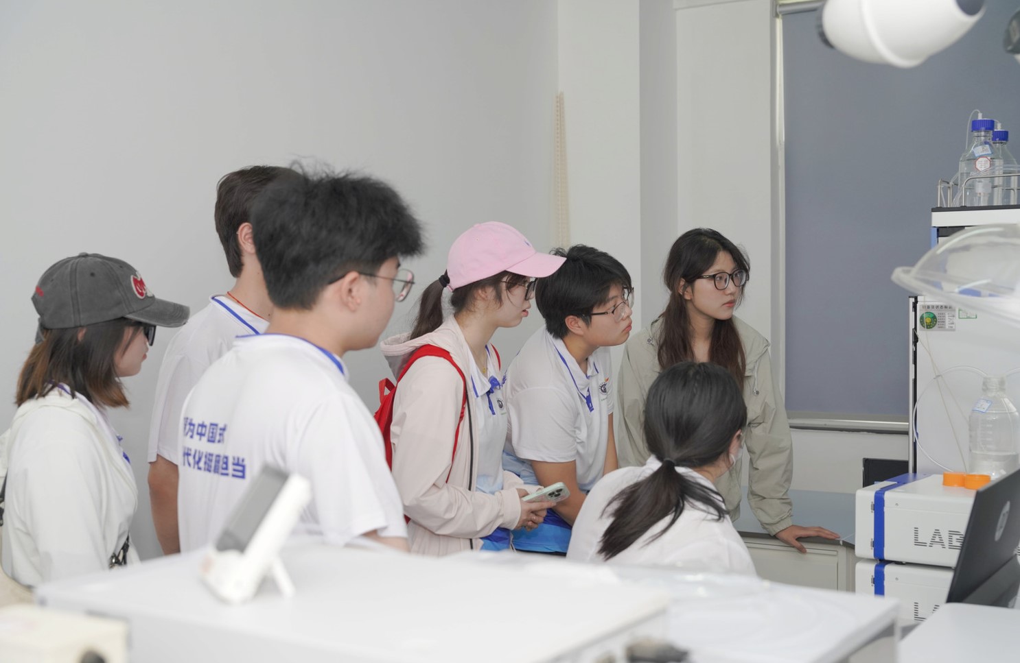 圖為實踐團(tuán)成員們在實驗車間聽實驗人員介紹儀器 張振宇供圖