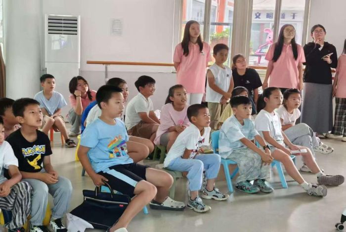 實踐團成員對社區(qū)小朋友授課照片 黃昕芮攝