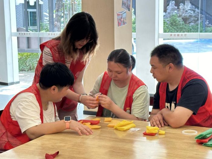 2025年暑假期間,杭州市西湖區(qū)三墩鎮(zhèn)殘疾人之家的活動(dòng)室內(nèi)暖意融融。浙江工商大學(xué)食品與生物工程學(xué)院出藍(lán)小隊(duì)正與這里的殘疾人朋友們一道,將生活中常見(jiàn)的水果包裝網(wǎng)套,通過(guò)巧手匠心,變作一朵朵絢爛的“太陽(yáng)花”。這場(chǎng)名為“網(wǎng)套生花融食安,巧手傳情護(hù)民生”的社會(huì)實(shí)踐活動(dòng),以寓教于樂(lè)的手工形式,將食品安全知識(shí)融入指尖,傳遞著守護(hù)“舌尖安全”的溫暖力量。
