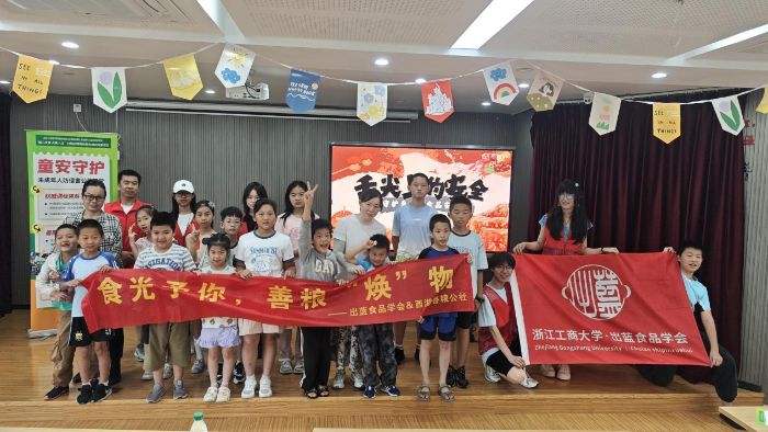 2025年暑假期間,杭州市西湖區善糧公社古蕩分社內笑語盈盈。浙江工商大學食品與生物工程學院出藍小隊在此開展“探案趣解食安秘,童行守護筑安康”活動,以趣味探案科普、親身體驗實驗相結合的方式,讓食品安全知識浸潤童心,播撒下守護“舌尖安全”的種子,傳遞著共治共享的溫暖力量。