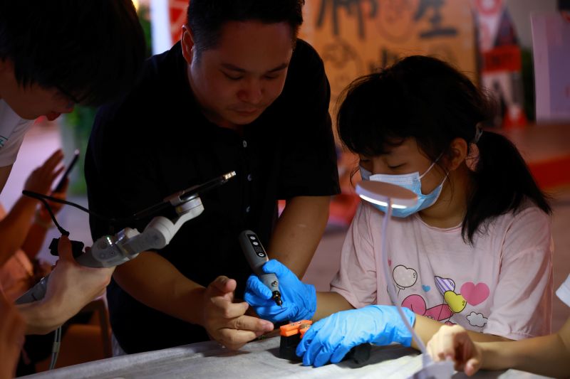 (隊伍成員協助小朋友雕刻 許永賢攝)
