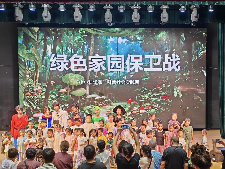 演出結(jié)束后,現(xiàn)場(chǎng)氣氛達(dá)到高潮。意猶未盡的小朋友們紛紛涌上舞臺(tái),與實(shí)踐團(tuán)的“大哥哥大姐姐”演員們進(jìn)行了親密互動(dòng)和歡樂(lè)合影,一張張洋溢著興奮與好奇的笑臉定格了這個(gè)充滿科普趣味和教育意義的瞬間。