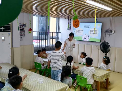 "老師,我不僅會背‘月中孤渡水’,還能講出它的意思!"在"給小朋友小紅花"環節,孩子們帶著自己的學習成果來到"月光兌換臺",用積累的詩詞知識兌換特制小紅花。這些紅花勛章以月光為底色,背面印著"月中孤渡水"的篆書字樣,拿到紅花的孩子都會驕傲地別在胸前。