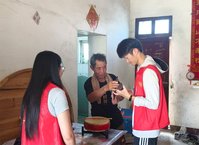 為弘揚(yáng)中華優(yōu)秀傳統(tǒng)文化,探尋非物質(zhì)文化技藝在當(dāng)今時代傳承與保護(hù)的途徑,6月30日,安徽外國語學(xué)院“非遺尋光,青春傳薪”傳承團(tuán)來到宣城市郎溪縣松林村,專訪皖南大鼓說唱傳承人季飛,并開展非遺技藝學(xué)習(xí)活動,以實(shí)際行動為非遺傳承注入青春活力。