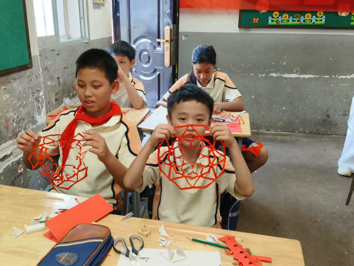 活動現場氣氛熱烈,孩子們積極性高漲,紛紛拿起工具動手嘗試。在宣講團成員的幫助下,一張張紅紙在孩子們手中變成了一件件充滿童趣的剪紙作品。