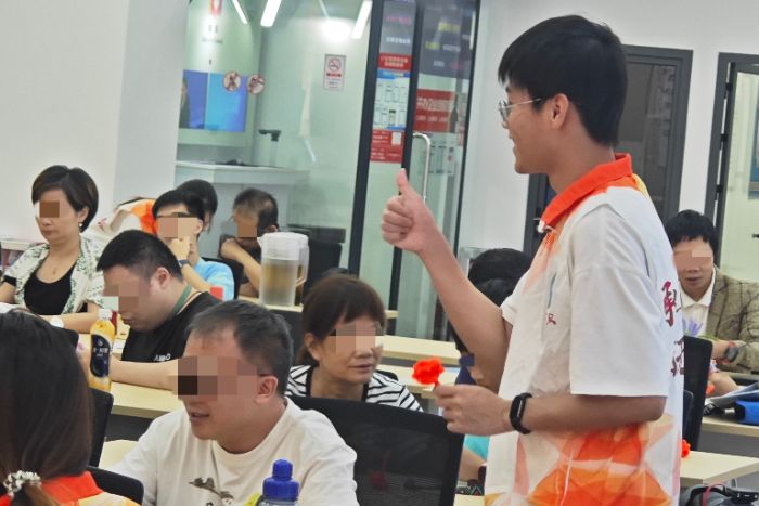 培訓教室里,鍵盤敲擊聲、輕聲討論與偶爾的笑聲交織。患有輕度言語障礙的小林(化名)正對著手機鏡頭,略顯緊張但認真地重復著直播開場白:“大家好…我…我今天帶來的是…”,汗水浸濕了他的額角,一旁陪伴的實踐隊員輕聲鼓勵。不遠處,肢體障礙學員小陳(化名)在隊員梓城“眼看、口述、手勢確認、反復實操”的引導下,手指雖不靈便卻執著地點擊鼠標,成功將一件虛擬商品上架,梓城立刻豎起大拇指肯定:“陳哥,這一步做得非常標準!”這一幕幕,是青云實踐隊將調研成果轉化為實際行動的生動縮影。