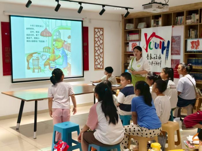 活動(dòng)中,“繪本共讀”環(huán)節(jié)成為最受孩子們歡迎的亮點(diǎn)。實(shí)踐團(tuán)成員繪聲繪色地講述各種各樣的故事,用抑揚(yáng)頓挫的語(yǔ)調(diào)、豐富的肢體動(dòng)作,為孩子們展開(kāi)了一段奇妙的故事之旅。生動(dòng)的情節(jié)讓孩子們?cè)诔两襟w驗(yàn)中悄然領(lǐng)悟:只有健康飲食與科學(xué)運(yùn)動(dòng)才能活力滿滿。這種寓教于樂(lè)的方式,讓健康生活的理念像種子般播撒在孩子們心間。