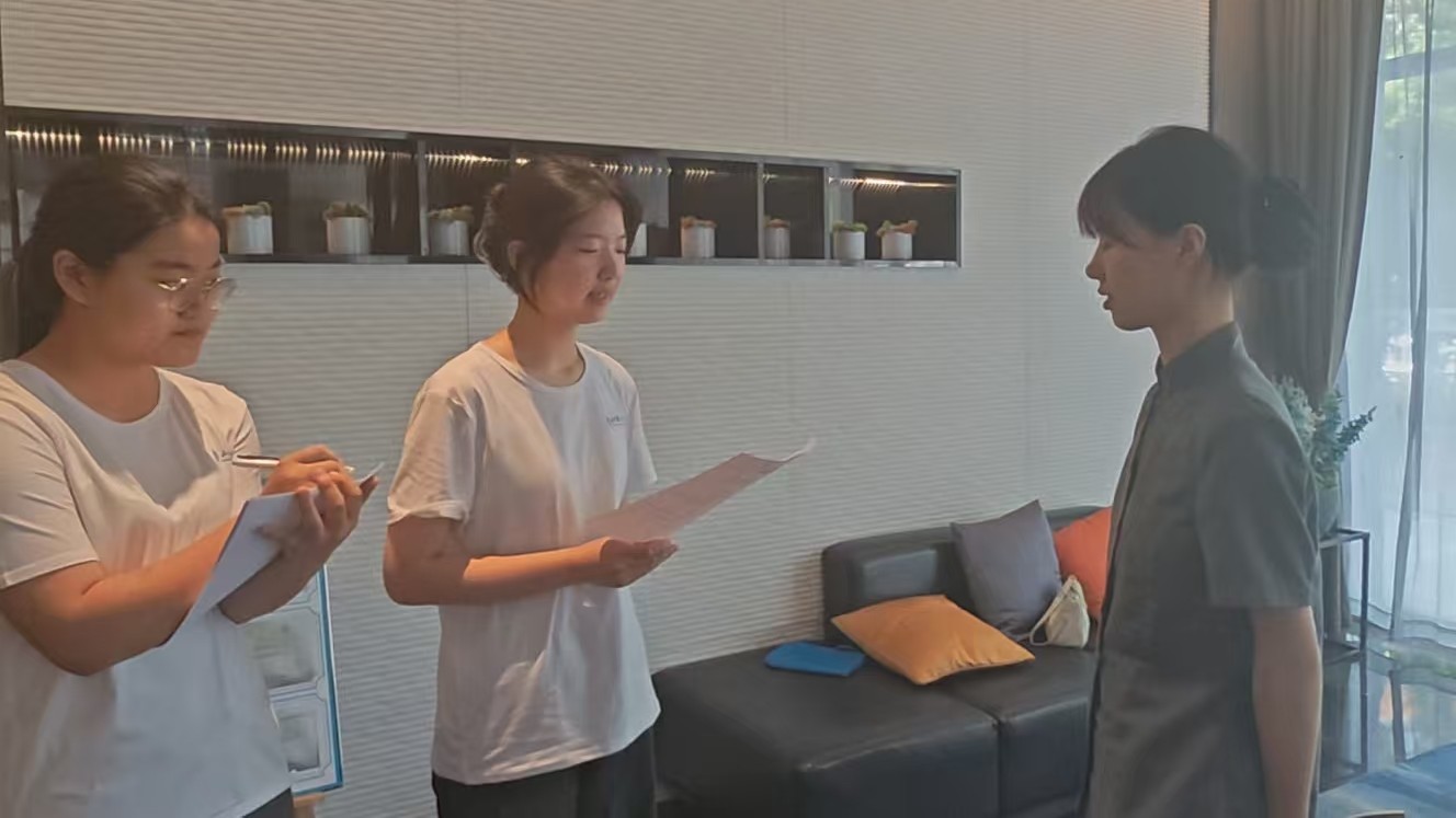 圖為團隊成員采訪酒店員工。汪昱廷 供圖