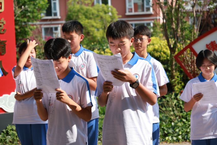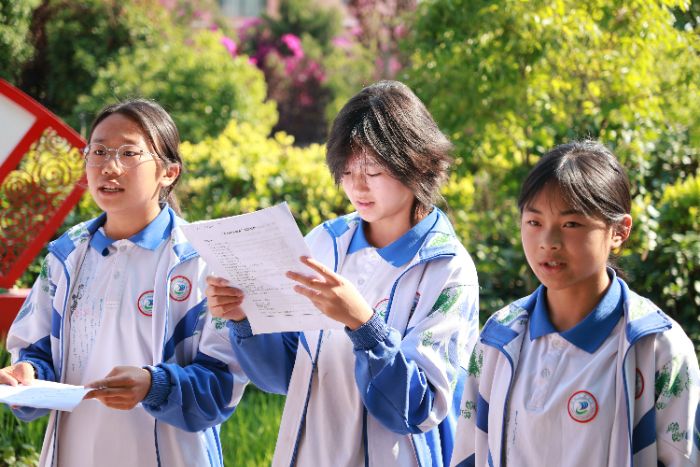 最后,“齊誦敦煌”活動為系列共讀畫上圓滿句號。伴隨著悠揚的敦煌古樂,十余名南華民族中學的學生用鏗鏘有力的普通話朗誦《莫高窟人的守望》詩篇。誦讀聲在校園回蕩,仿佛帶領大家穿越時空,親歷敦煌守護者們的堅守歷程。彝族學生領誦的段落“守護的不只是壁畫與洞窟,更是中華文明生生不息的火種”,讓在場所有人都為之動容。這場跨越地域與民族的語言盛宴,不僅提升了學生們的普通話水平,更在他們心中種下了文化自信的種子。