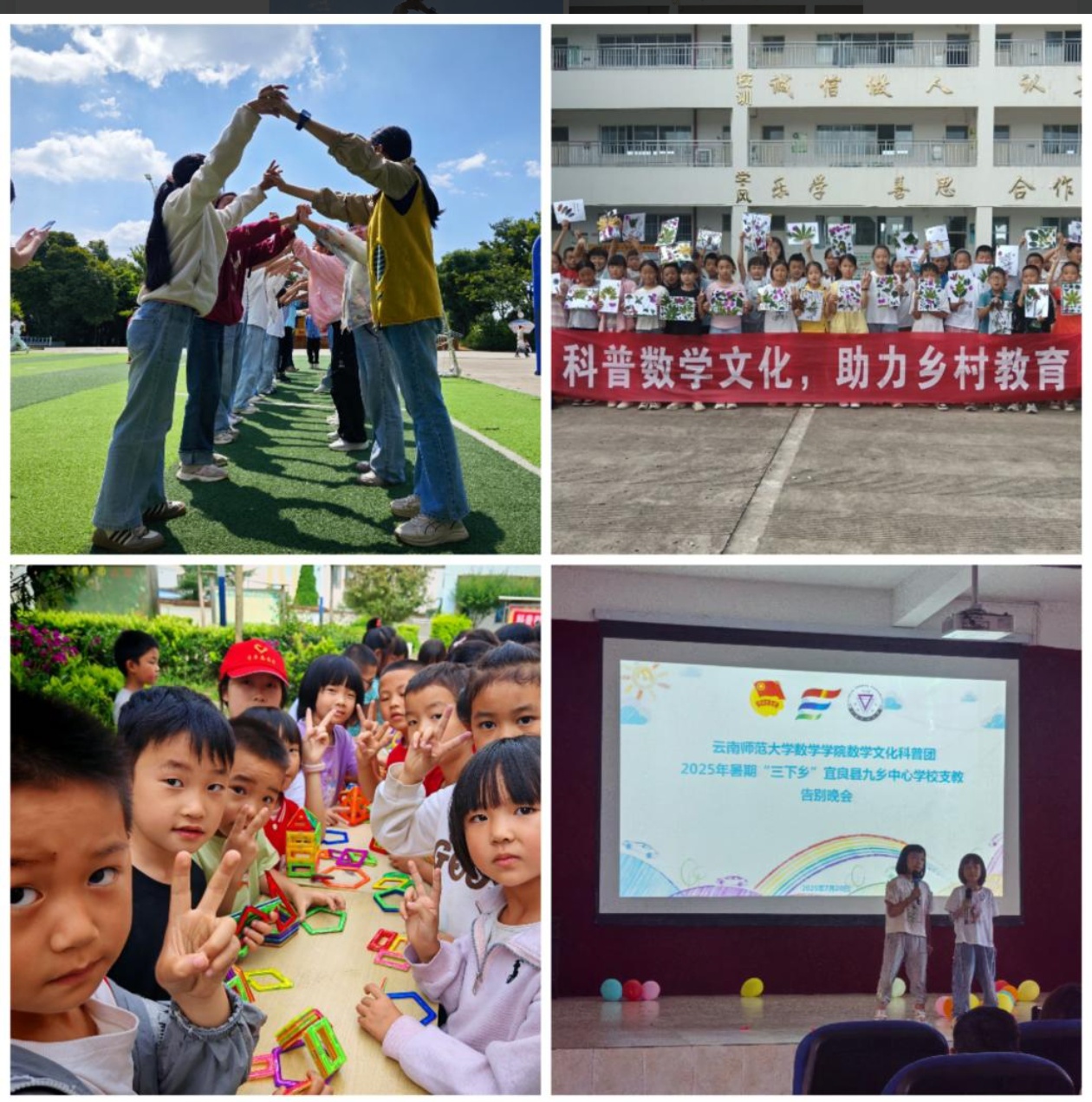 蟬鳴把盛夏的午后拉得很長,陽光透過九鄉小學的梧桐葉,在地上織出細碎的光斑。7 月 9 日至 21 日,云南師范大學數學學院數學文化科普團的志愿者們帶著滿箱的教具與熱忱,走進宜良縣九鄉中心學校。他們想讓這里的孩子們知道,假期不止有作業本上的墨跡,還有聯大烽火里的星光、落葉拼貼的童話、歌聲里的風 —— 于是,一場關于成長的雙向奔赴,在蟬鳴與歡笑中悄悄展開。