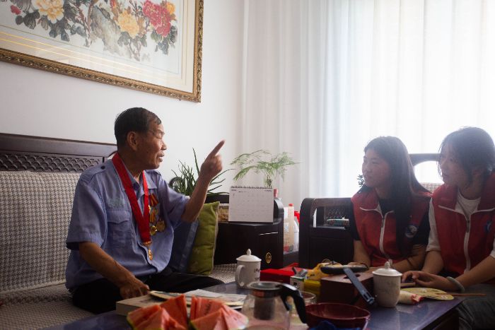 ▲圖為實踐團志愿者向社區兒童講述抗美援越老兵的烽火故事劉慧鵬 攝