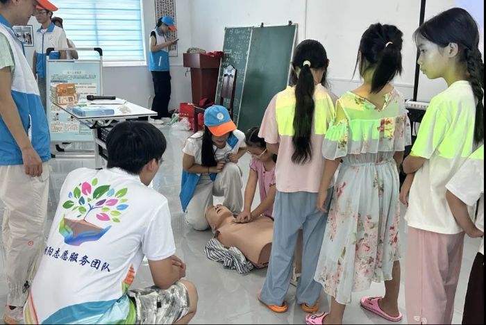 夢朝陽志愿服務團隊聯合武漢輕工大學醫學與健康學院志愿者開展急救科普活動。活動現場,志愿者利用人體模型,為孩子們演示心肺復蘇等急救技能,講解動作要領。孩子們認真觀察,踴躍嘗試,在實踐中學習急救知識。隨后,團隊圍繞兒童健康開展基礎體檢,普及用眼、口腔衛生等常識,助力孩子們養成良好的生活習慣。此次科普活動,以“實踐+科普”模式,讓健康知識融入孩子們的日常認知。