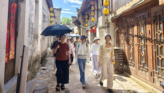 活動首日,學子們懷著對家鄉的深情與好奇,走進安徽皖南電氣有限公司的生產車間。機器轟鳴中,智能化生產線高效運轉,精密的儀器設備與現代化管理模式讓學子們直觀感受到家鄉工業的轉型升級。隨后,一行人來到琴溪鎮馬頭老街,青石板路蜿蜒向前,古民居錯落有致,非遺傳承人的現場展演讓大家沉浸式體驗了傳統文化的魅力。在這里,歷史與現代交融,學子們紛紛拿起手機記錄下家鄉的古韻新貌。