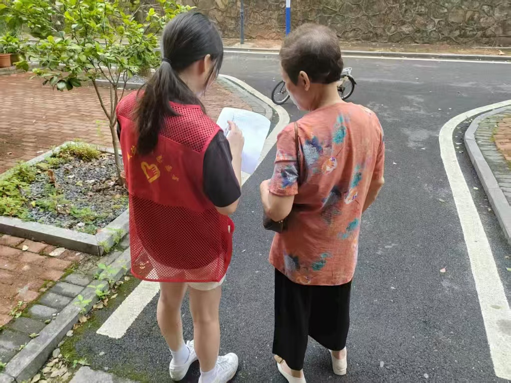 圖為志愿者走訪社區對社區居民進行調研。李研研 攝