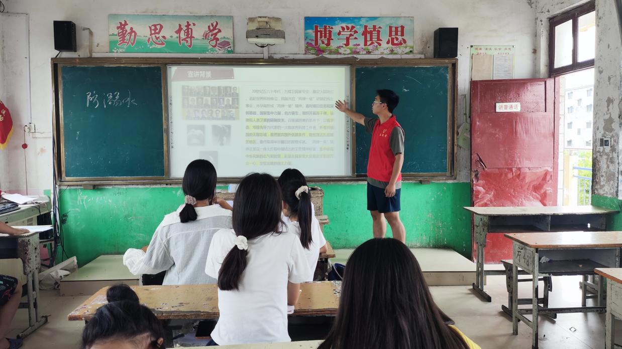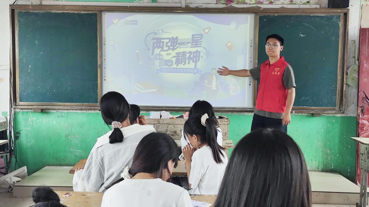 為讓精神傳承更具活力,宣講團精心設計多元互動環節。知識問答時,同學們踴躍舉手,“原子彈爆炸時間”“兩彈一星元勛姓名”等問題,成為檢驗學習成果的試金石,答對者收獲的小獎品,更是化作激勵探索的動力,讓大家對知識的渴求愈發強烈;討論分享環節,同學們爭相發言,“我想當科學家,像鄧稼先一樣”“要學習他們不怕困難的精神” ,質樸話語里,滿是“兩彈一星”精神引發的青春共鳴,讓愛國情、科學夢在交流互動中持續升溫,成為驅動成長的內在力量。