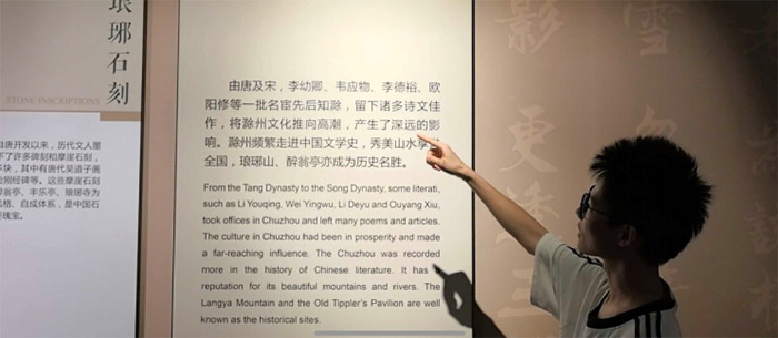 “名人展區”里,歐陽修與滁州的故事成為了焦點。展柜中《醉翁亭記》的復刻碑文蒼勁有力,錢嘉懿輕聲念著“環滁皆山也……”,“每次讀這篇文章都有新的感受,今天站在這里,仿佛能看到歐陽修當年與民同樂的場景。”旁邊的歷史場景復原區,再現了北宋時期滁州城的熱鬧景象,隊員們仿佛穿越時空,置身于那個文人薈萃的年代。明代開國皇帝朱元璋與滁州的淵源展示區也吸引了不少目光,通過文字介紹和實物陳列,大家了解到滁州在朝代更迭中扮演的重要角色,對這座城市的歷史地位有了更深刻的認識。