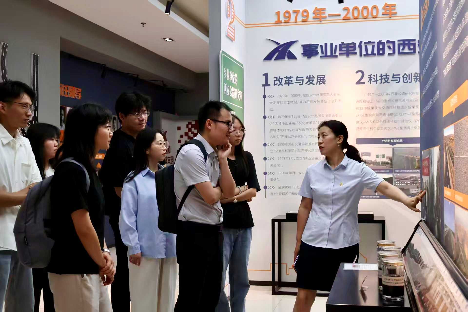 當日下午,調(diào)研團隊在西安公路研究院進行實地參觀學習。在研究院華澤道路材料有限公司總工弓銳的帶領(lǐng)下,師生們深入實驗室及生產(chǎn)車間,詳細了解新材料研發(fā)流程、生產(chǎn)工藝及質(zhì)量控制體系。此外,弓銳總工重點介紹了當前行業(yè)領(lǐng)先的高性能道路材料、環(huán)保建材等產(chǎn)品的生產(chǎn)技術(shù),并與長安大學師生就材料性能優(yōu)化,智能化生產(chǎn)等話題展開討論。參與調(diào)研的“挑戰(zhàn)杯”團隊學生表示,此次實踐調(diào)研極大程度拓寬了我們對道路材料創(chuàng)新的認知視野,更深刻體會到理論知識與產(chǎn)業(yè)應(yīng)用的結(jié)合點,為后續(xù)科研競賽和職業(yè)規(guī)劃提供了寶貴參考。