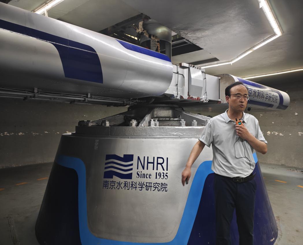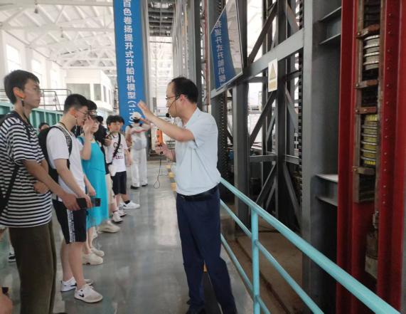 7月2日下午,實踐團前往南京水利科學(xué)研究院,重點參觀通航試驗廳與土工離心機試驗廳。在通航試驗廳,1:100比例的三峽大壩模型生動展示了泄洪效能優(yōu)化與霧化影響研究,其不對稱泄洪孔設(shè)計為污水處理廠曝氣系統(tǒng)優(yōu)化提供了技術(shù)參考;水利驅(qū)動式垂直升船機模型所蘊含的流體控制原理,為污水處理沉淀池設(shè)計帶來新啟發(fā)。