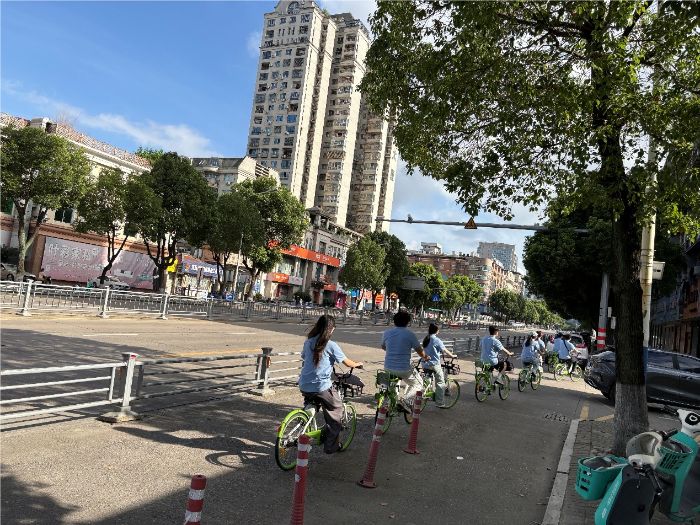 上午,實踐隊員們選擇自行車作為移動宣傳平臺。車頭統一懸掛著醒目的“崇尚科學反對邪教”、“抵制邪教侵蝕共建和諧家園”等宣傳旗幟,隊員們的背包或車身兩側也張貼著精心設計的反邪教宣傳海報和標語。他們組成整齊的騎行隊伍,沿著預設路線有序行進,鮮艷的色彩和響亮的宣傳口號吸引了眾多市民的駐足觀看和熱情關注。