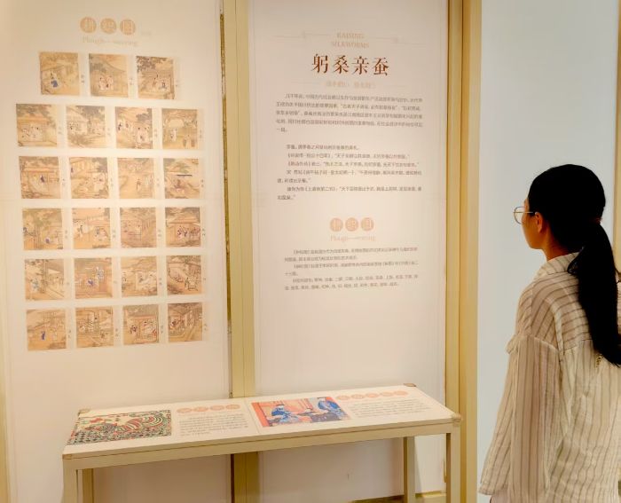 8月3日,成員們走進江南絲綢文化博物館。這座以美學視角闡釋絲綢文化的專業場館,生動鋪展了絲綢從傳統走向現代的蛻變,更勾勒出其作為文明紐帶的深厚底蘊。博物館入口處,蠶桑養殖的歷史長卷徐徐展開:古老的蠶匾里仿佛還殘留著桑葉的清香,木質繅絲車轉動的軌跡印刻著先民的智慧,而現代蠶種培育技術的展示,則讓人們看到傳統產業在科技賦能下的新生。這一條從“蠶”到“絲”的鏈條,不僅是絲綢產業的發展脈絡,更是中國人順應自然、創造美的生動寫照。