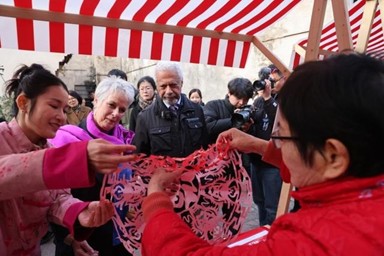 圖為寧波工程學院英語專業(yè)學生在體驗剪紙。鄭思萱供圖