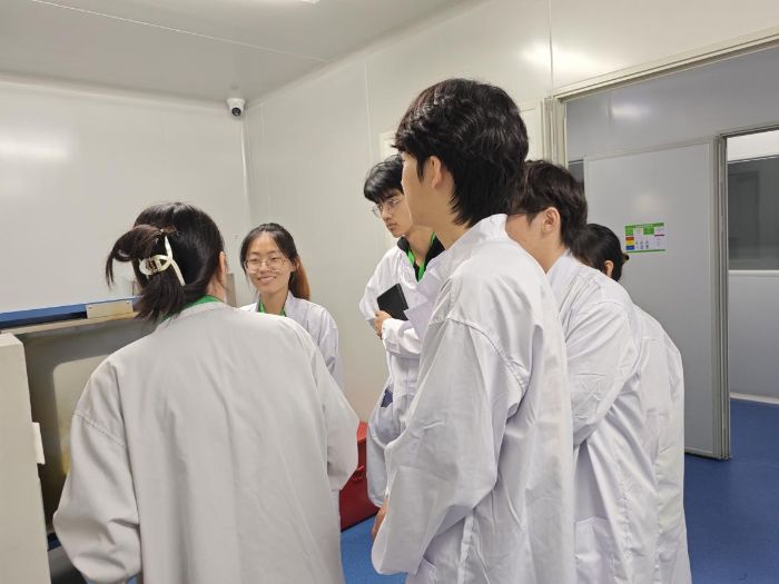 為保障實操規(guī)范安全,實踐團成員有序完成健康證辦理后,在企業(yè)培訓人員的指導下開展系統(tǒng)培訓。培訓中,成員們重點學習《食品安全國家標準》,掌握產(chǎn)品檢測全流程及崗位核心要點。“檢測數(shù)據(jù)的小數(shù)點后兩位可能就決定著產(chǎn)品的合格與否,規(guī)范操作是底線。”企業(yè)培訓人員在講解時強調(diào)。通過培訓,成員們不僅明晰了規(guī)范操作的底層邏輯,更樹立起“安全為基、質(zhì)量為魂”的職業(yè)意識。