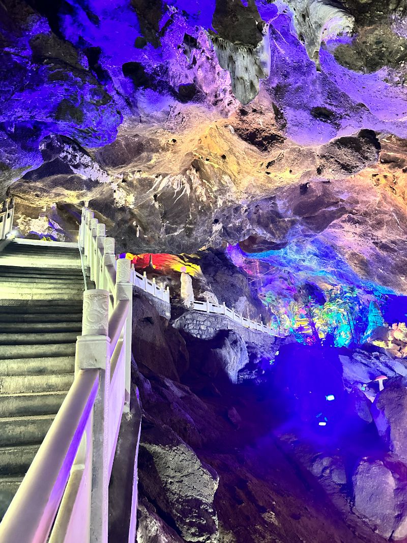 此外,洞內(nèi)溫濕度調(diào)控系統(tǒng)運(yùn)轉(zhuǎn)良好,保障了脆弱喀斯特結(jié)構(gòu)的長(zhǎng)期穩(wěn)定。團(tuán)隊(duì)成員在記錄過(guò)程中感受到:雞冠洞作為開(kāi)發(fā)運(yùn)營(yíng)超過(guò)30年的成熟景區(qū),在生態(tài)保護(hù)理念與技術(shù)手段的運(yùn)用上已形成體系,為溶洞類地質(zhì)資源的“長(zhǎng)期開(kāi)發(fā)+有效保護(hù)”提供了直觀案例。
