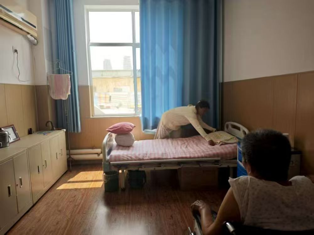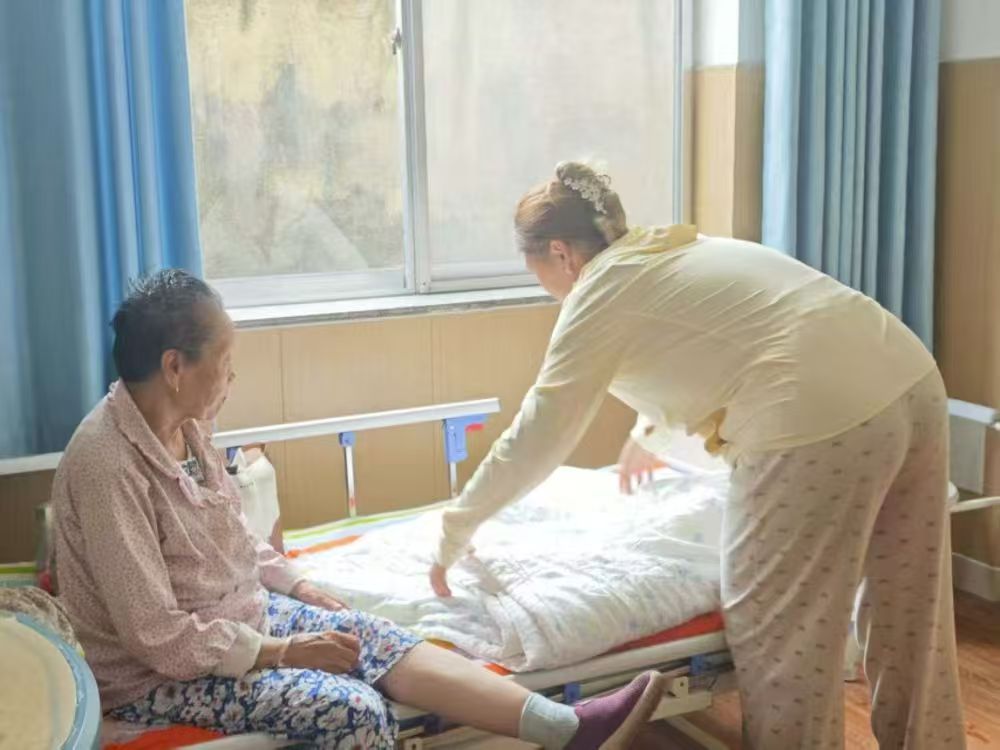 在生活照料方面,成員們協(xié)助護(hù)理人員整理床鋪、疊放被褥,保持老人居住環(huán)境舒適。特別是針對(duì)行動(dòng)不便的老人,成員們耐心調(diào)整床鋪高度,確保老人起居安全。