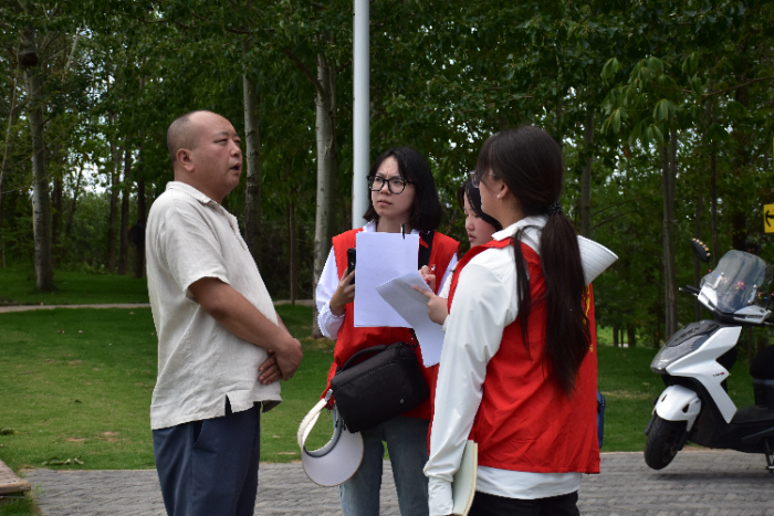 ▲圖為實踐團(tuán)成員采訪游客