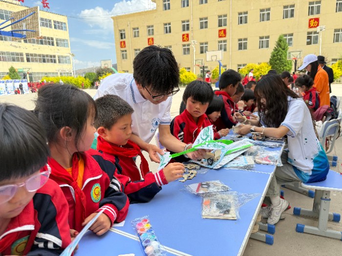圖為宣講團成員帶領小朋友們制作飛機模型