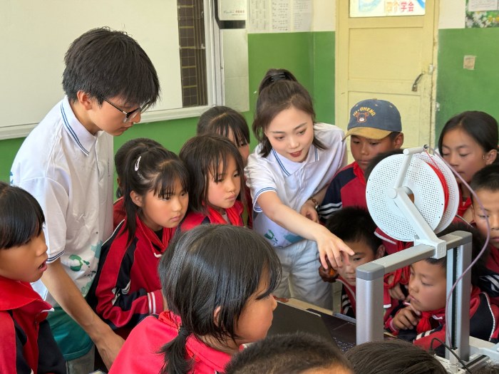 情景宣講:讓科學家精神觸手可及 宣講團以“戈壁灘上的青春”為主線,用影像資料和科學家手稿復刻件,還原錢學森、鄧稼先、王淦昌、郭永懷等的感人場景。小朋友們看到錢學森穿越阻礙歸國時露出欣喜的笑容,見到鄧稼先在戈壁荒灘演算的復刻手稿展開時發出驚嘆,聽到王淦昌說“我愿以身許國”時悄然落淚。六年級學生馬明軒感慨:“‘兩彈一星’是一代人用青春和熱血寫就的史詩。”